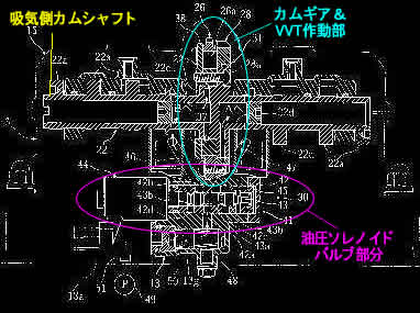 さて、具体的なVVT特許図面と実車エンジン画像の気になる点ですが、