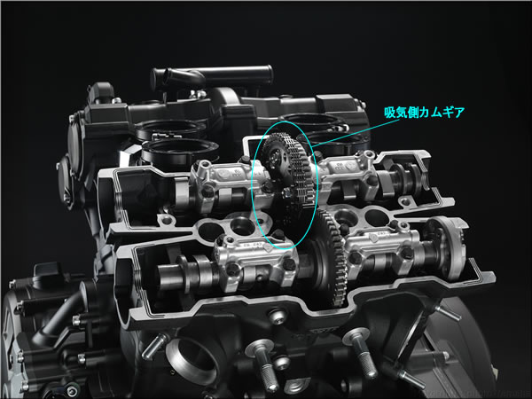 このカムギアはクランク軸からカムチェーンを介して駆動され、