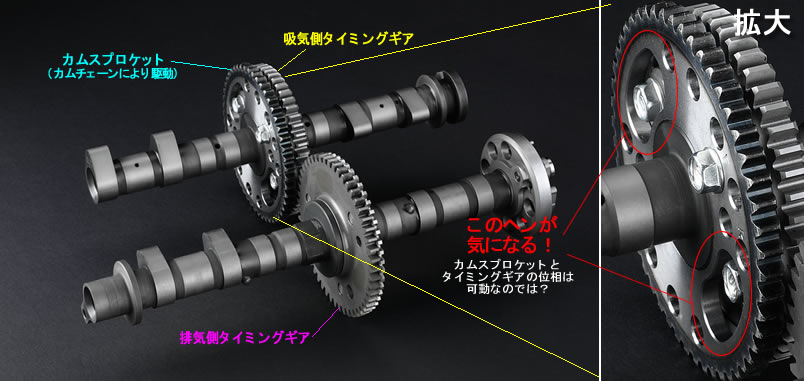 この吸気側カムギア周辺の構造です。