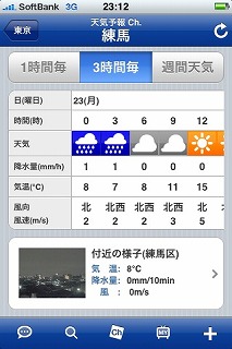 かなりピンポイントまでエリアを指定して、1時間単位とかの予報も見れる。