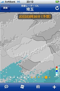 上の右の写真の雨雲レーダーの予想図はかなり当たる。