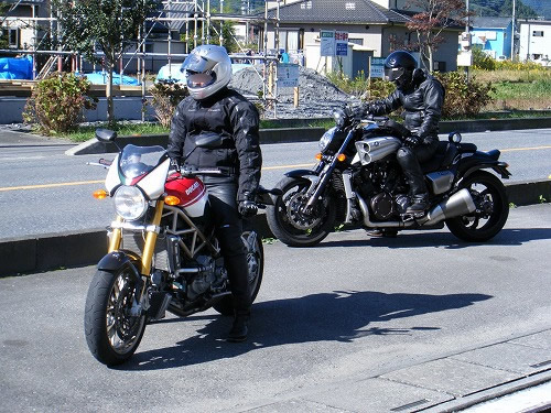 お初の参加になるKTMのTさん(先代VMAXも所有)と、