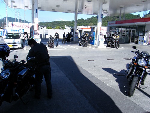 高速を降りて、最初のガソリンスタンドでVMAXをお腹一杯にしておきます。