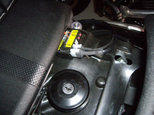本体はシート下、燃料給油口の横にマジックテープで貼付。
