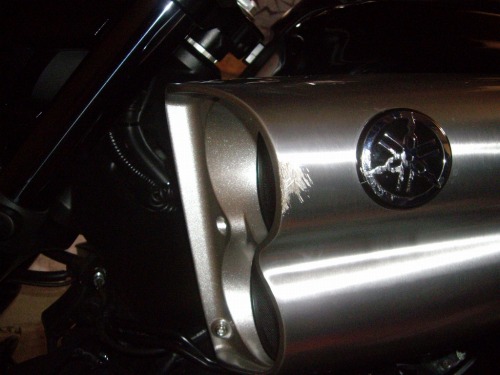 ・エキパイカバーはエンジンガードを兼ねてますね。エンジン本体(ジェネレータカバー等)には全く傷はありませんでした。