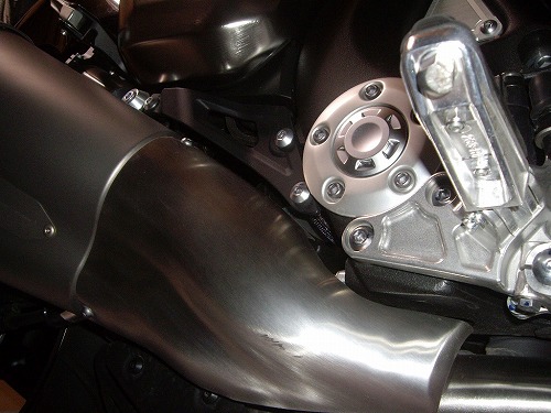 調子乗ってガリガリやってたら、サイレンサーのカバーに擦り傷が…